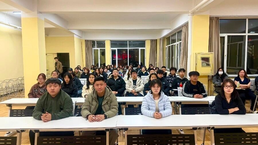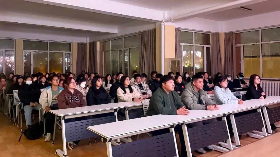 2025年11月4日晚,鸭脖学生会组织80余名学生干部齐聚“青春驿站”大学生活动中心四楼,共同参与红色观影实践活动,观看红色经典影片《建国大业》,传承红色基因、厚植爱国情怀。