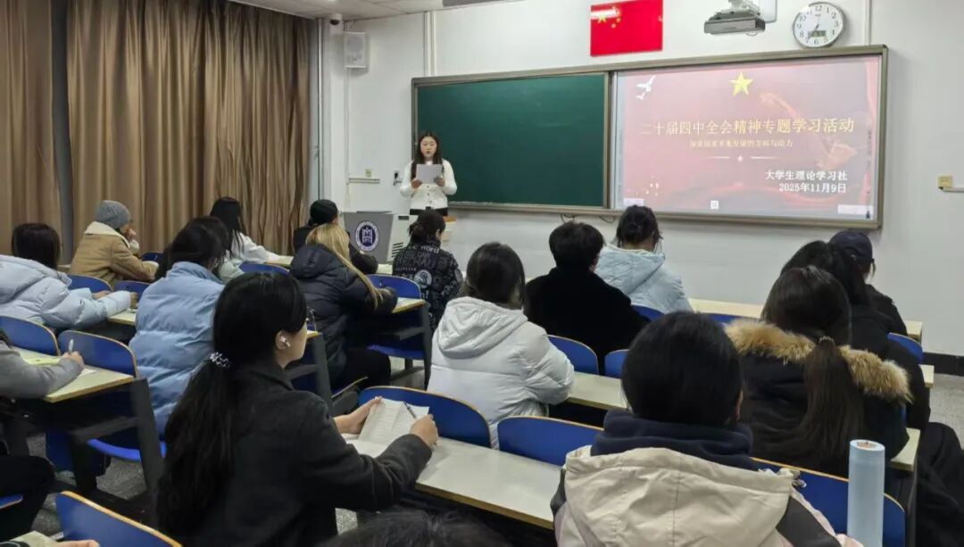 为了深入学习党的二十届四中全会精神,11月9日晚,鸭脖大学生理论学习社在尚智楼106教室开展“学全会精神,担青年使命——青年与中国式现代化同行”专题学习活动,社员全员参与。