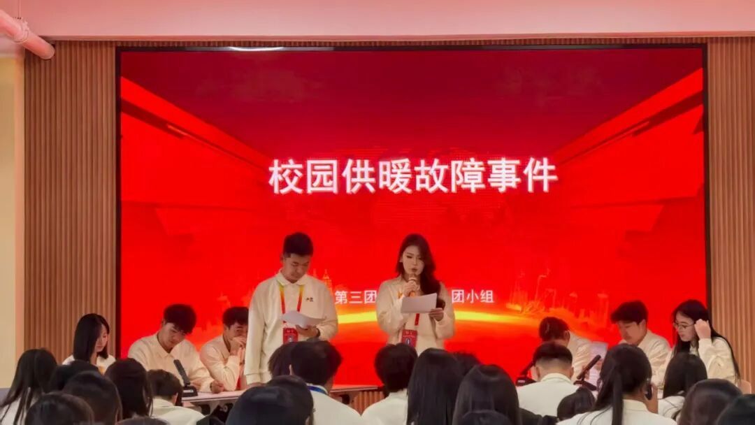 本次模拟新闻发布会围绕“校园周边交通拥堵及安全隐患”“校园图书馆座位预约系统漏洞及占座事件”“校园供暖故障”等五个典型热点案例展开。活动前期,青马学员分组筹备,自主搜集资料、剖析问题症结、研讨应对策略,完成扎实调研策划,为演练筑牢基础。