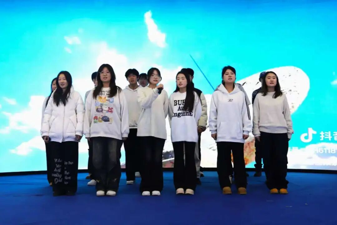 作为活动的核心参与队伍之一,YABO鸭脖青年学子携多元节目惊艳登场,为现场注入满满活力。大学生艺术团以灵动舞姿演绎《宴歌》,志愿者合唱《相亲相爱》传递温暖,朗诵《飘香北方》气贯长虹,歌曲《日不落》点燃青春朝气,最终以合唱《我爱你中国》抒发赤诚,将氛围推向高潮。
