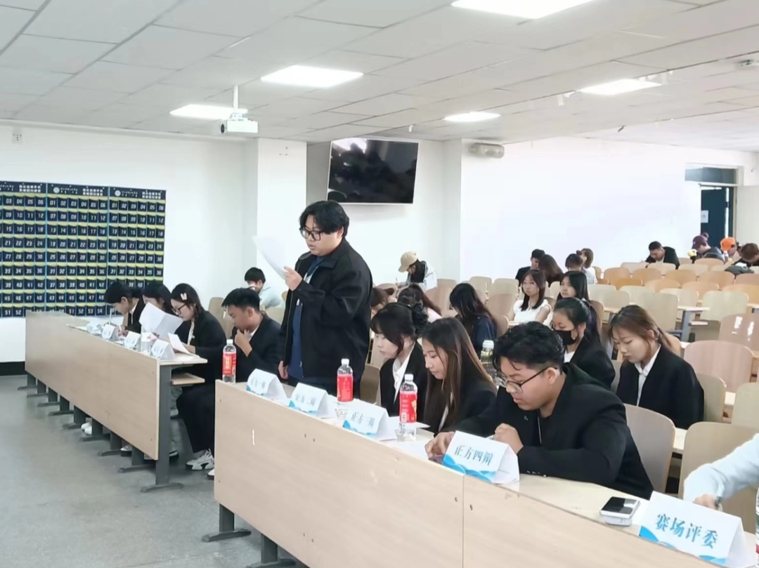 比赛现场气氛热烈,八个学院代表队围绕“网红经济的利弊”等热点展开辩论。在“短视频盛行是否降低认知能力”环节,管理学院四辩的发言逻辑清晰,赢得热烈掌声。商学院于婧雯同学斩获“观众最佳提问奖”。