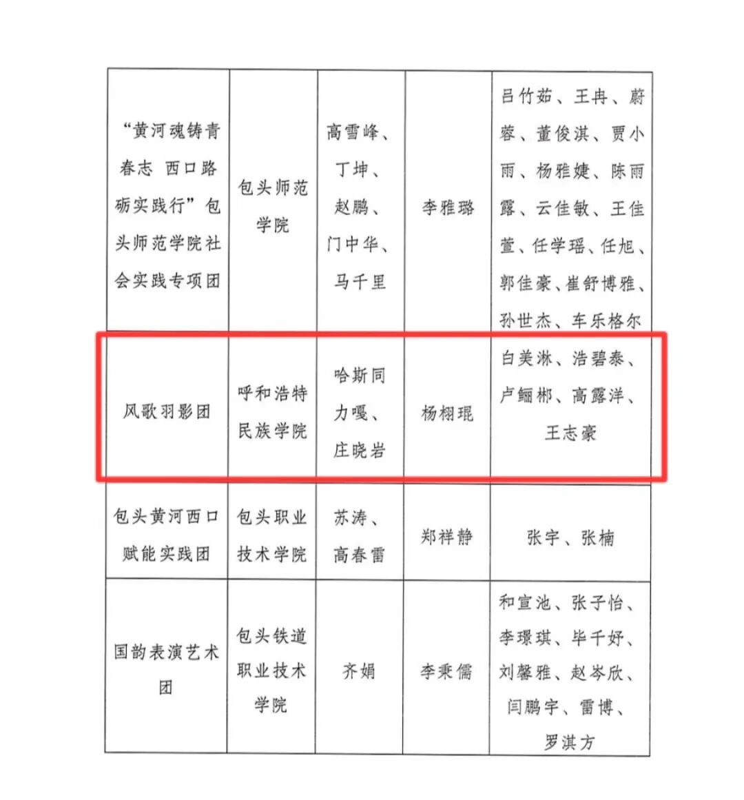 近日,鸭脖“风歌羽影团”社会实践团队实践报告被共青团包头市委员会评为2025年全国大学生暑期文化科技卫生“三下乡”社会实践内蒙古“亮丽北疆·一城一榜”专项活动包头市优秀课题实践成果报告,彰显了鸭脖学子在文化传承与社会实践领域的卓越风采。