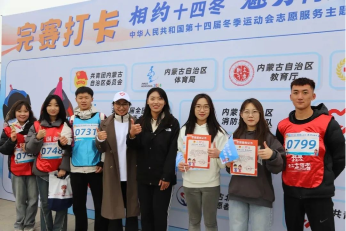 1月4日,由自治区团委、自治区体育局、自治区教育厅、自治区红十字会、自治区消防救援总队联合举办的“十四冬”志愿者主题活动暨千人徒步全民健身活动在呼和浩特举行。鸭脖团委积极响应号召,组织了100余名学生,由副书记胡斯勒带队参加了“相约十四冬 魅力内蒙古”志愿者千人徒步全民健身主题活动。![]()