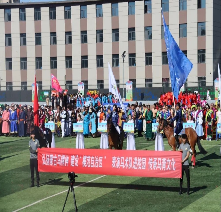 随着舞蹈的谢幕,男子二重唱《红旗飘飘》也响彻在校园的每一个角落,红旗飘扬献祖国,草原儿女共奋进,一段段动听的旋律唱响了同学们的爱国情怀,唱出了新时代青年积极向上的精神风貌。