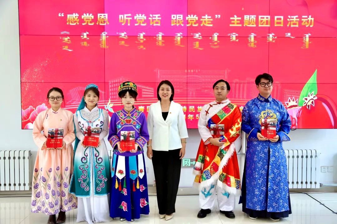 为深入贯彻落实党的二十大精神,贯落实习近平总书记考察内蒙古重要讲话精神,进一步做好民族团结进步活动月各项工作,引导广大青年感党恩、听党话、跟党走,不断增强对伟大祖国、中华民族、中华文化、中国共产党、中国特色社会主义的认同,5月27日下午,学校团委组织开展了“感党恩 听党话 跟党走 ”主题团日活动暨第四期“石榴籽”小课堂分享会。校党委副书记格根哈斯出席活动并为本期分享者们赠予了《习近平与大学生们(第二卷)》等学习书籍。活动由学校学生会主席蒋昊言同学主持。