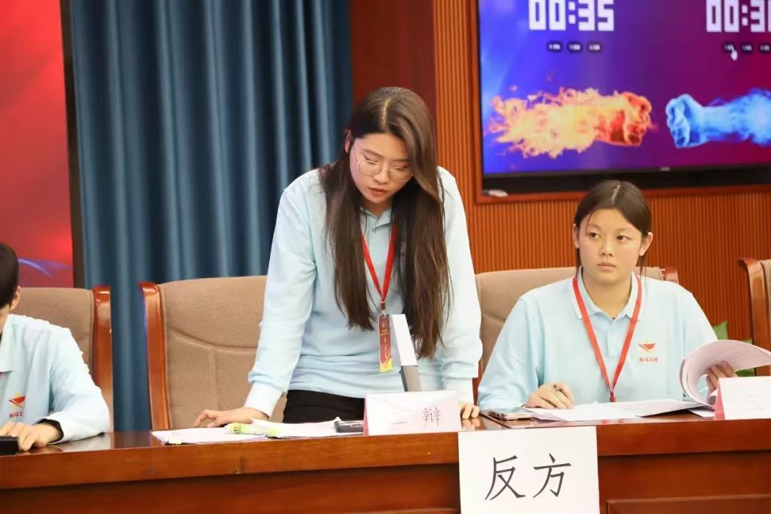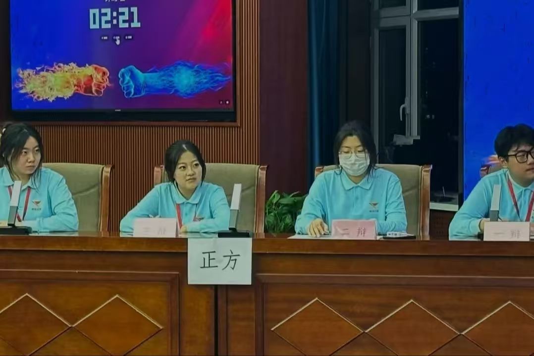 为提高学员们的思辨能力,学校第九期青马班于11月11日在综合楼12楼会议室举办了主题辩论赛。由校辩论队队长李文爽,成员刘丽娜、李克勤担任评委。