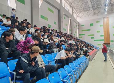 2024年4月26日,由体育学院副书记白图日根老师组织体育学院全体学生于体育馆三楼召开了有关5.1放假安全、学业预警和北疆就业网上注册方面的会议。