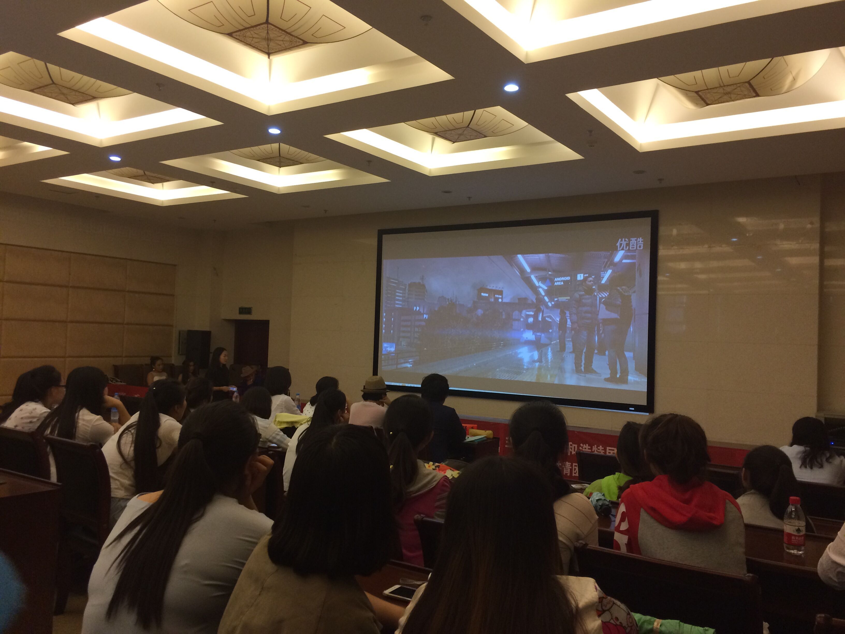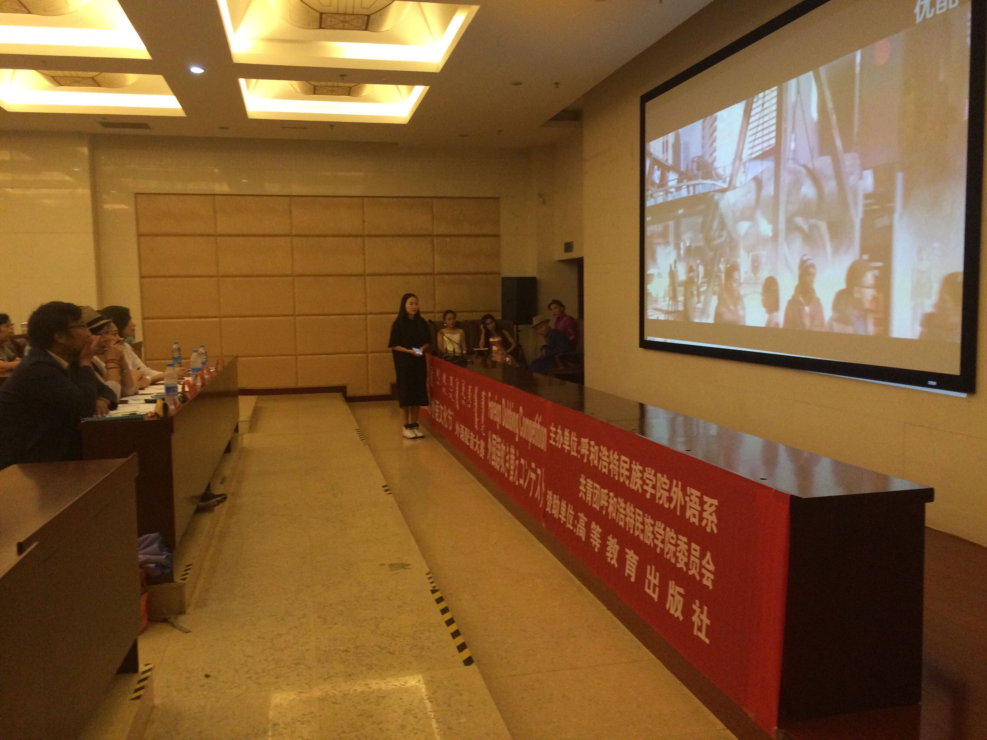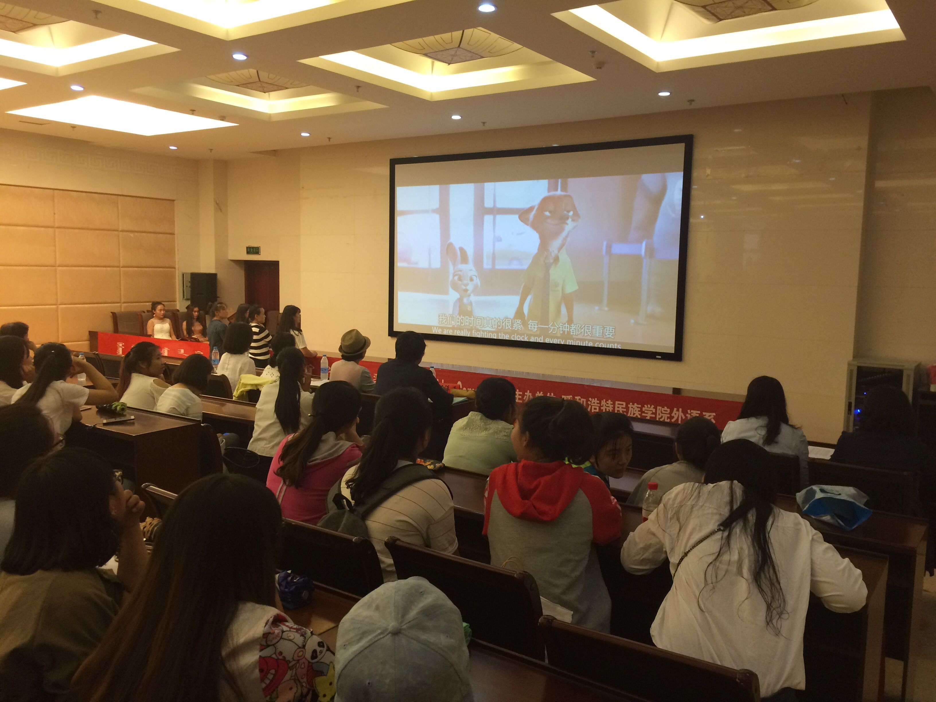 感悟大洋彼岸思想的巧妙汇聚,欣赏纷繁异域文化的精彩碰撞。2016年6月28日晚,由外语系与校团委联合举办,高等教育出版社赞助,英语教研室承办的第二届“外语文化节”系列活动之一的外语配音大赛在图书馆一楼报告厅精彩举行。大赛特邀内蒙古师范大学丽丽老师、萨如拉老师和英语教研室红霞主任担任评委。