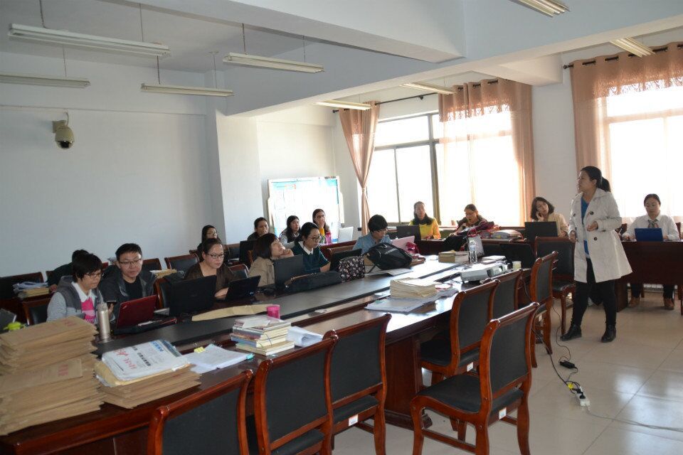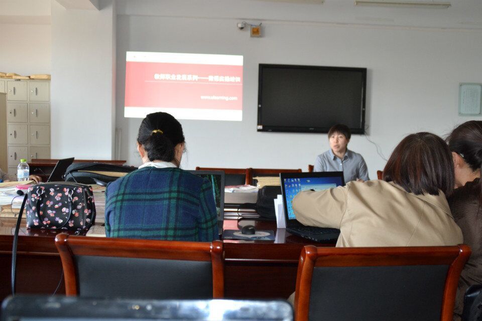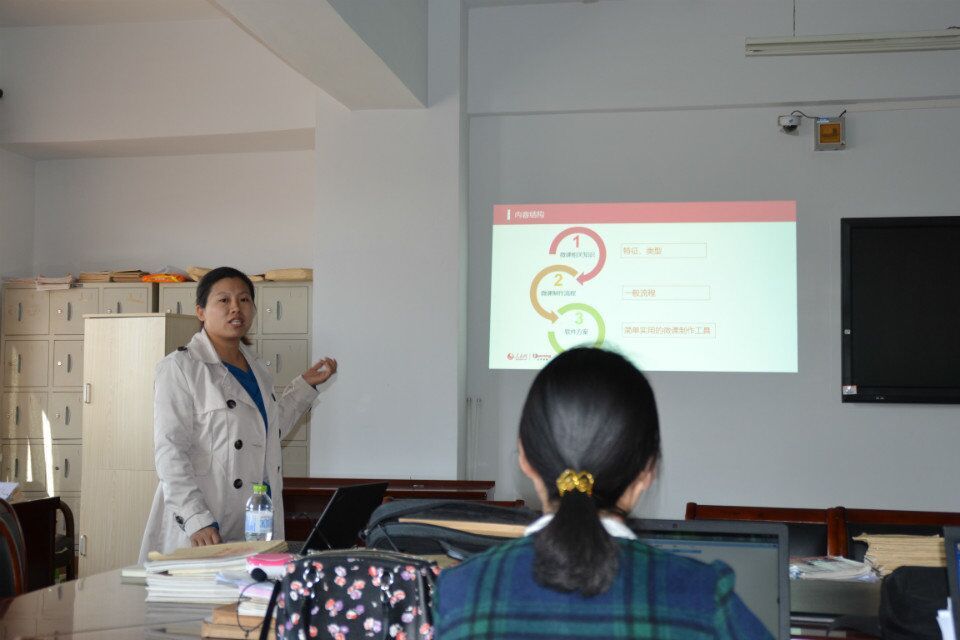 2016年4月17日8时30分,外语系会议室(都林楼611),外语系邀请北京文华在线教育科技股份有限公司李智东、彭敏霞两位老师以《教师职业发展系列——微课实操培训》为题开展了2016年度外语专业系列专业技术人员继续教育专业课的集中培训活动。外语系列全体专业技术人员参加了本次培训活动。两位老师先后就微课相关知识、微课制作流程、软件方案及课程发布等进行了系统讲解,彭敏霞老师还手把手对全体教师进行了微课制作软件的实践操作指导。