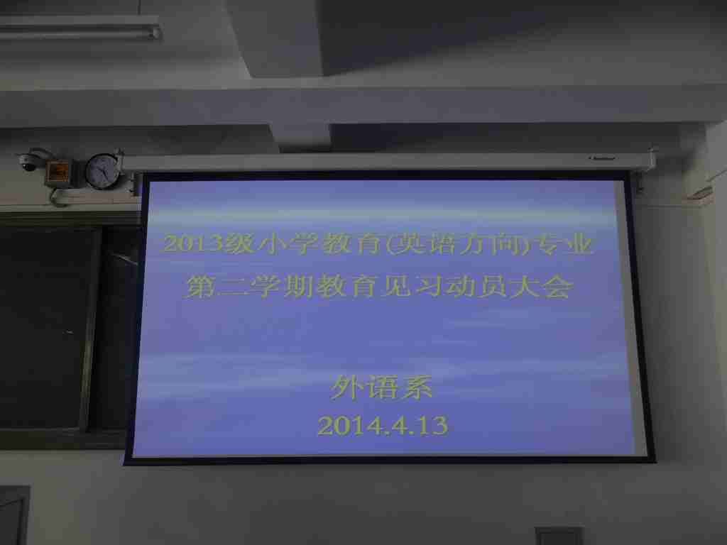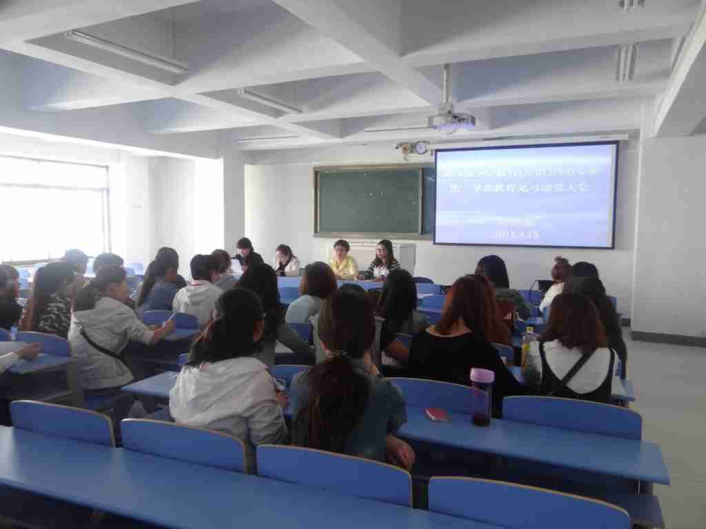 2014年4月13日上午10:30,外语系在618教室召开了2013级小学教育(英语方向)专业第二学期教育见习动员大会。大会由外语系英语教研室负责人红霞老师主持,见习指导教师王牧兰、乌日娜、乌云斯日古楞及2013级小学教育(英语方向)专业一、二班全体学生参会。
