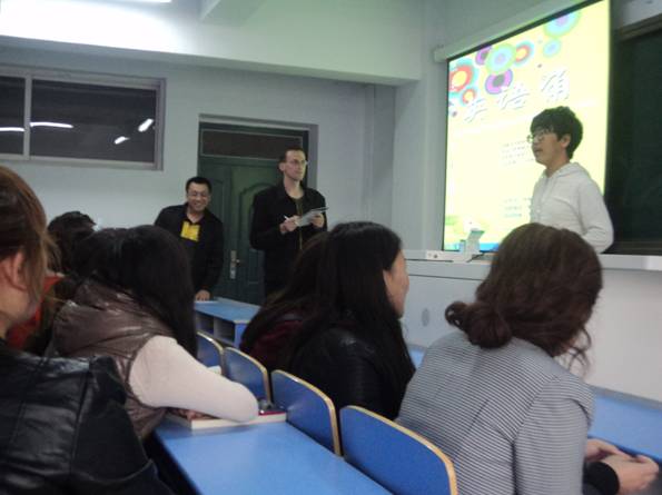 外语系于2012年10月15日下午在全校范围举办了“英语角”活动。活动以分组讨论、英语歌曲表演、趣味游戏为主要内容。有近百名英语爱好者参加了活动。活动中师生们积极交流,热情表演。活动起到了活跃学生业余生活,激发英语学习热情,提高英语应用能力的作用。