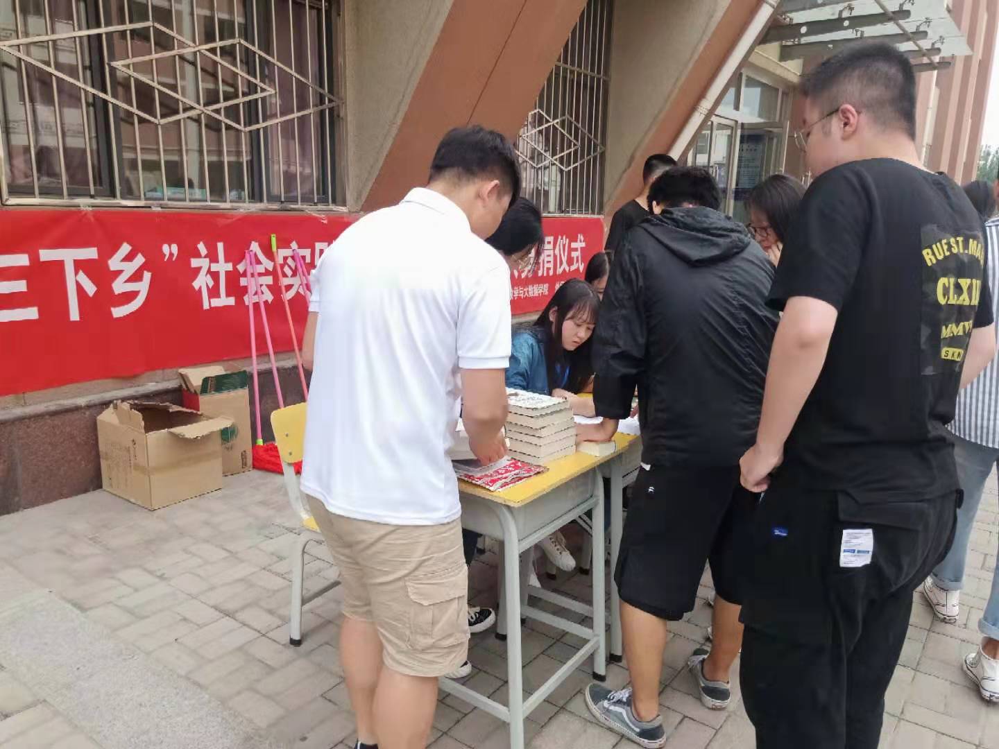 2019年7月1日中午12:00,我院开展“三下乡”社会实践教育扶贫小分队募捐仪式。本次活动由外国语学院联手数学与大数据学院联合推出。所捐物品都会在“三下乡”活动时送到贫困地区。
