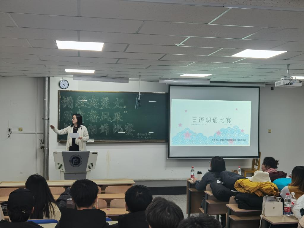 为锻炼同学们的口语表达能力、自我表现能力,展现大学生的专业风采,营造良好的日语学习氛围,12月12日晚7时,外国语学院于尚智楼314教室举办“诵经典美文,展青春风采”日语朗诵比赛。日语教研室何桂花老师、包金兰老师、高乌兰老师、白红梅老师担任本次比赛评委,参赛选手为在校日语专业学生。