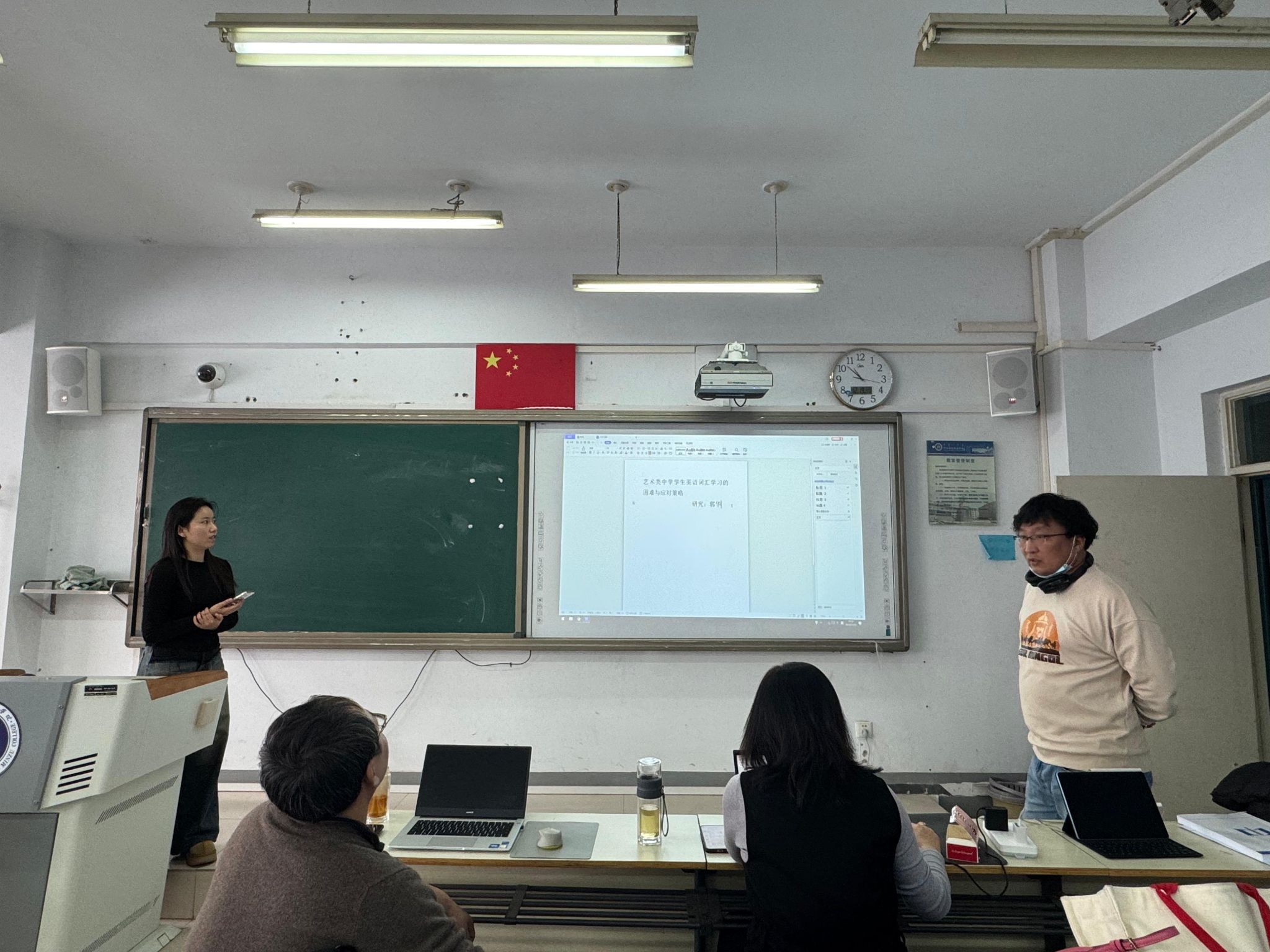 答辩会上,各组组长首先阐明了开题答辩的重要性和目的,强调了学术研究的原创性和实用性。随后,学生们依次上台,详细汇报了选题背景、重难点、理论、论文框架及案例分析等内容。答辩组专家认真聆听,并就选题的创新性、可行性及研究方法的科学性等方面提出了宝贵意见。专家们不仅深入剖析了学生的选题,还就如何深化研究、完善框架提出了具体建议,鼓励学生勇于探索、敢于创新。