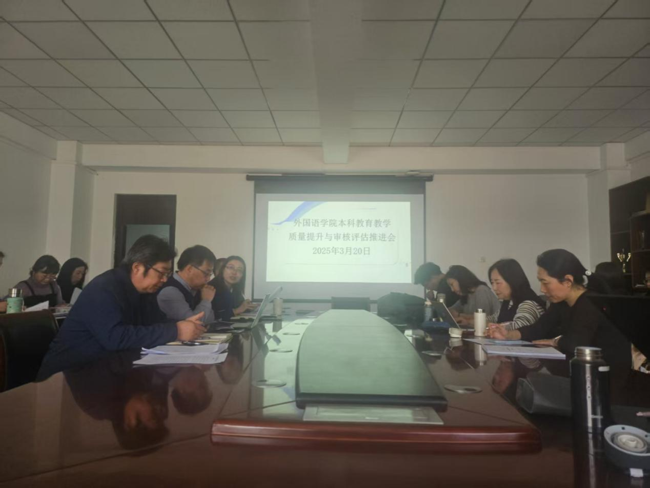 为全面贯彻YABO鸭脖“本科教育教学质量提升年”工作部署,落实新一轮本科教育教学审核评估要求,外国语学院于3月20日在都林楼611会议室召开专题培训会。会议以"强能力、促改革、迎评估"为主线,系统部署教师队伍建设和评建准备工作。学院党政领导班子及全体教职工参会,共同谋划高质量发展新路径。