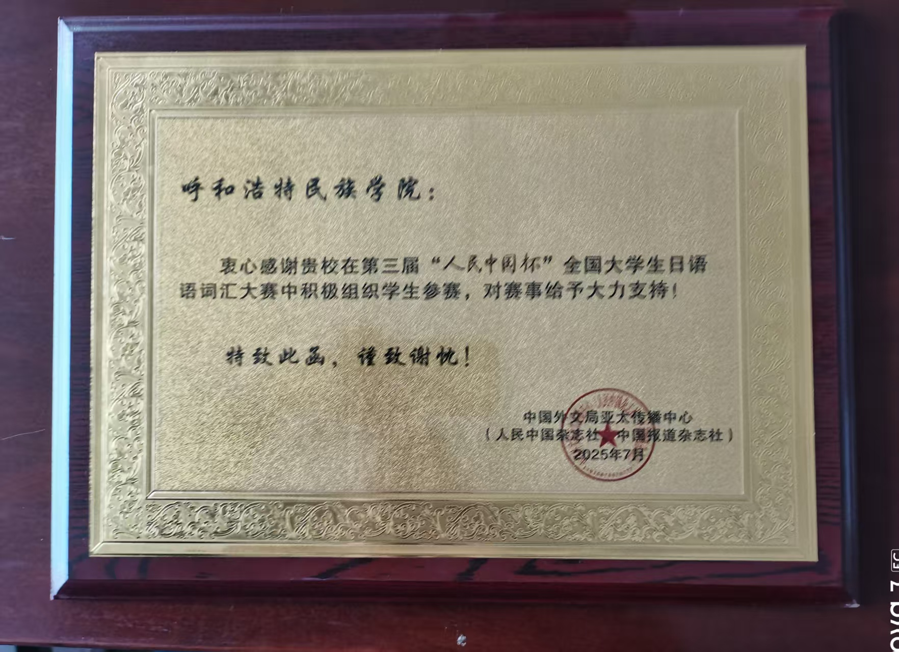 外国语学院对此次比赛十分重视,由日语教研室教师团队通过集体教研精心筹备,从词汇梳理、模拟训练到赛前指导全程护航,最终24级日语班19名、22级日语班4名学生经过角逐,2名学生脱颖而出摘得一等奖,9名学生获二等奖,11名学生获三等奖,获奖率达100%。此外,班级还凭借有序的组织协调与优异的整体表现,获得大赛主办方(中国外文局亚太传播中心)颁发的“优秀组织奖”奖牌,充分展现了鸭脖日语教学的扎实成果与学子的良好风貌。