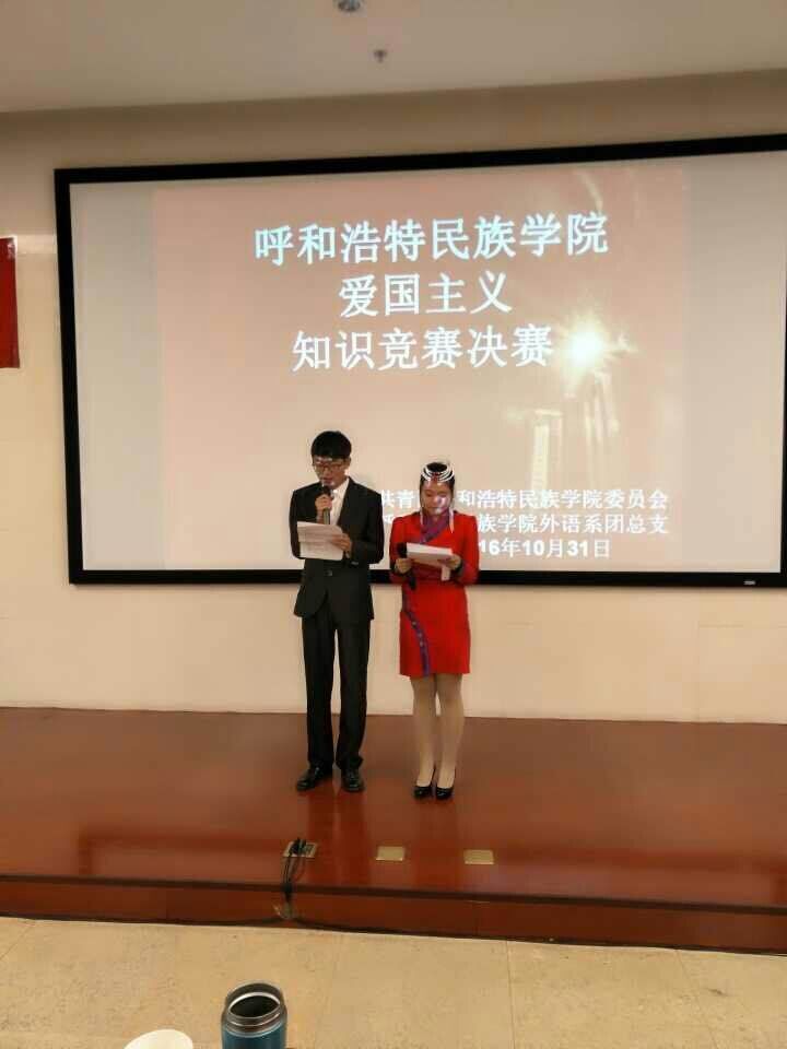 为弘扬爱国主义精神,加强大学生的思想道德建设,提高爱国主义素养,2016年10月31日晚,由团委主办、外语系承办爱国主义知识竞赛在图书馆一楼报告厅举办。外语系党总支副书记红梅、团总支负责人王春梅及校学生会主席参加本次活动。