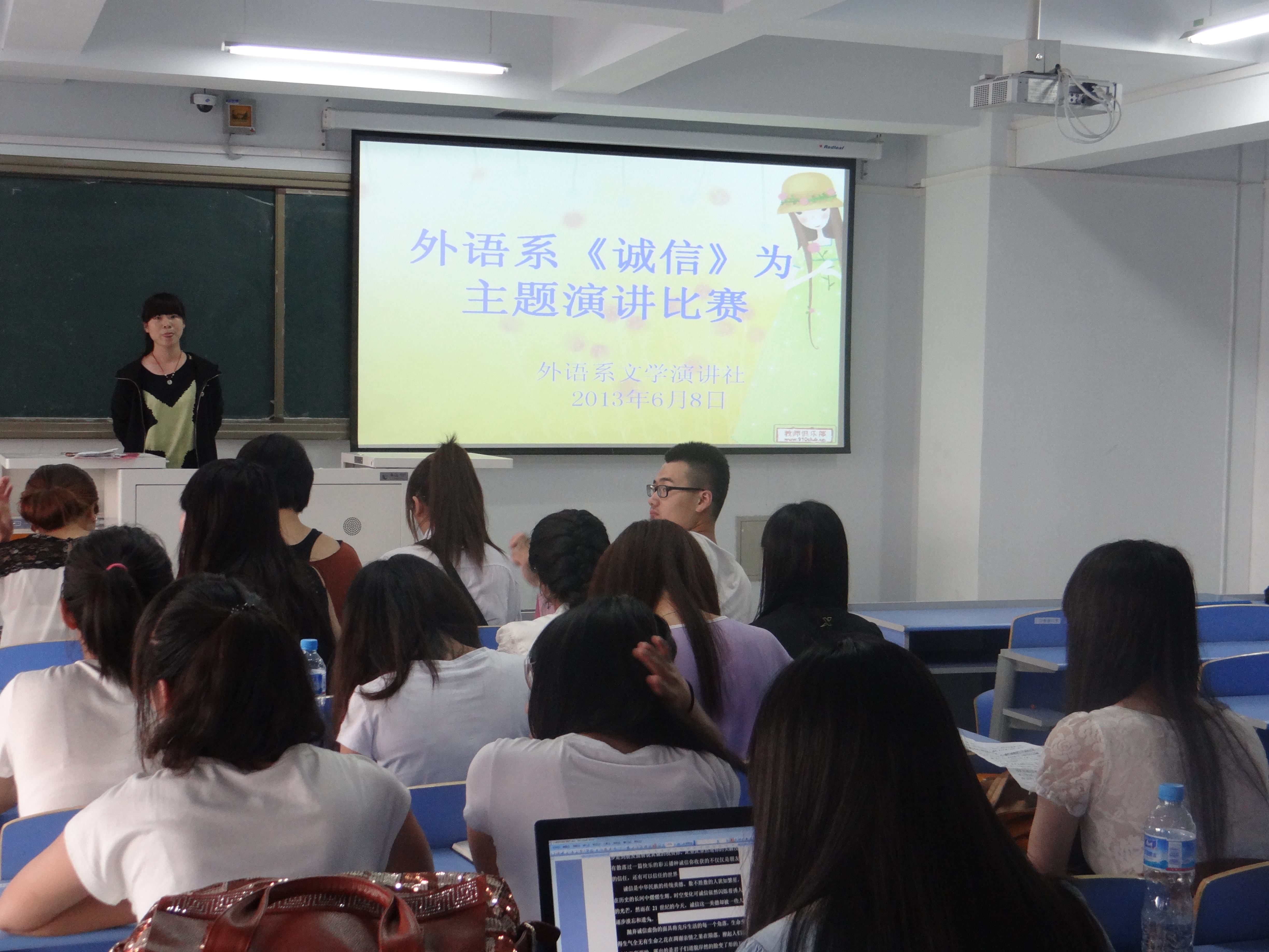 为使感恩、诚信思想深入学生头脑,外语系团总支于2013年6月8日在新教学楼618教室举办了《诚信》主题的演讲比赛。外语系23名选手参加了比赛。