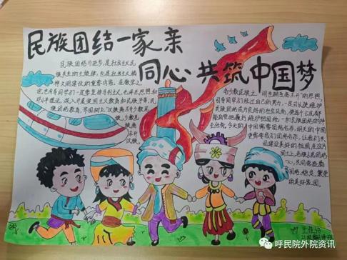 本次活动面向外国语学院全体学生开展。主要以设计手抄报为主要形式。活动发布后,学生们积极参赛,精心创作,作品主题鲜明,图文并茂,版面新颖,紧扣时代精神,反映同学心声,以润物细无声的方式夯实民族团结的思想根基。