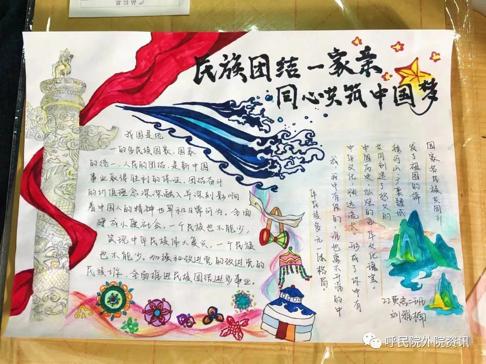为全面贯彻党的民族政策,深化民族团结进步教育,铸牢中华民族共同体意识,外国语学院于9月23日举办“民族一家亲”手抄报比赛,通过创作手抄报的形式引导学生了解各民族的特色文化、风俗习惯,加深各民族学生对其他民族文化的了解,增进彼此感情,引导学生树立正确的国家观、历史观、民族观,增强学生对中华民族的认同感和自豪感。