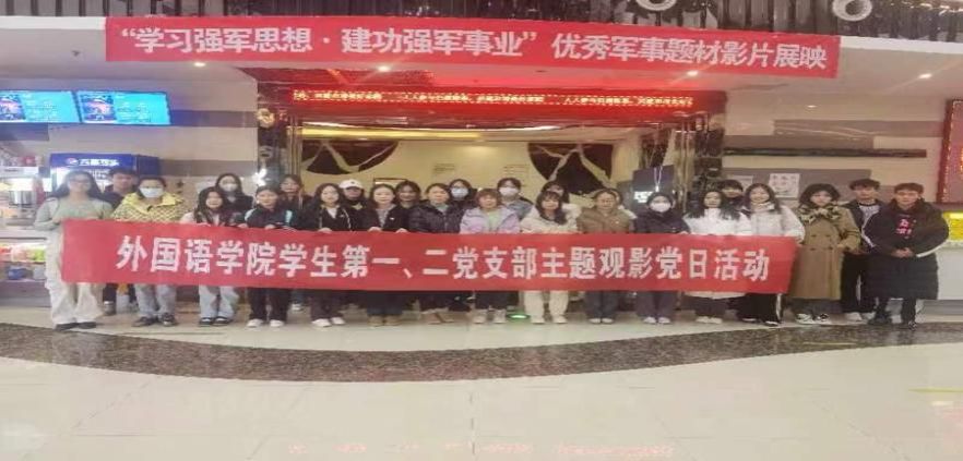 为引导学生党员深切感受爱国情怀和民族精神,铭记战士们的英勇牺牲,外国语学院学生第一、二党支部于11月24日赴滨海横店影城开展主题观影党日活动,观看红色影片《志愿军》。