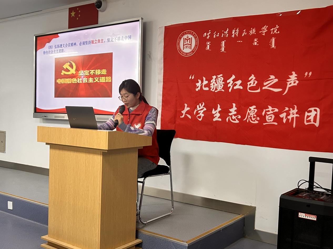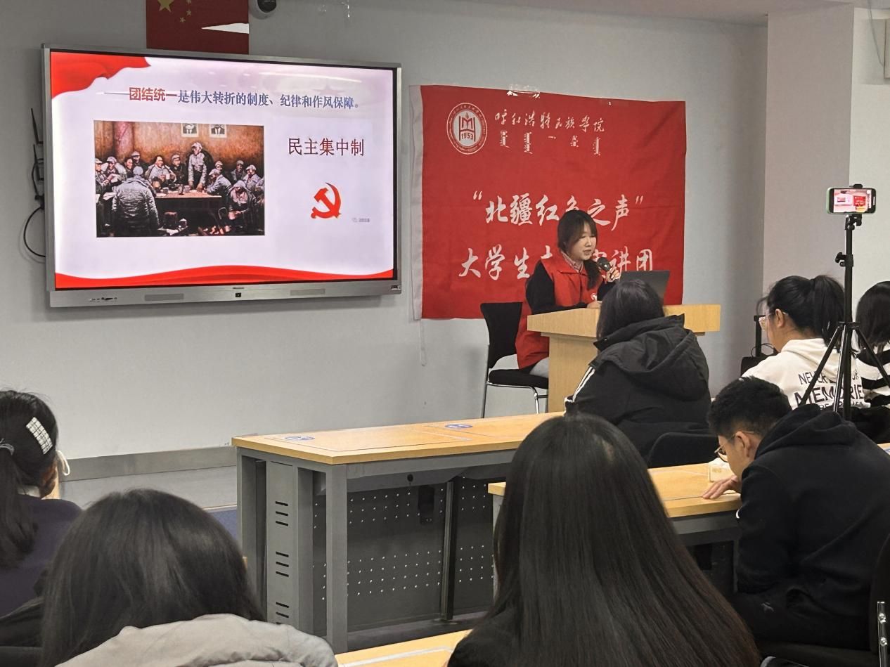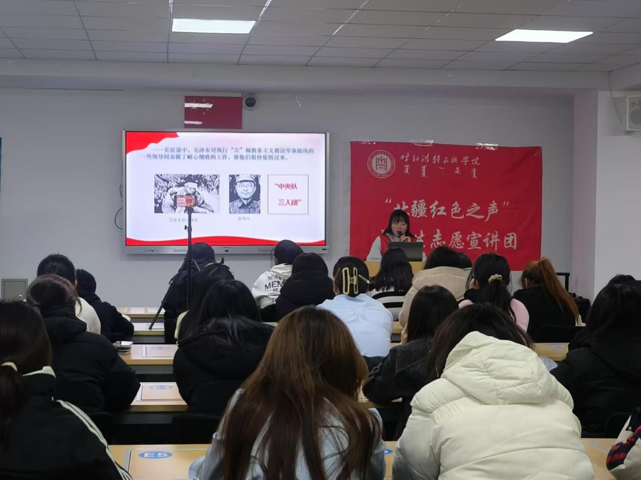 12月8日晚7时,2024年全国大学生遵义会议精神志愿宣讲团入选团队——YABO鸭脖“北疆红色之声”大学生志愿宣讲团在都林楼506智慧教室面向外国语学院学生成功开展了首场宣讲活动。