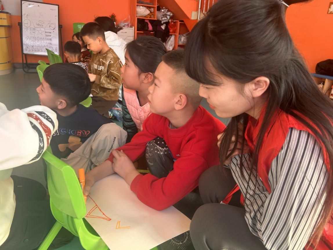 活动伊始,宣讲团团长黄卫秀以满腔的热情向孩子们介绍了“北疆红色之声”大学生志愿宣讲团,让这个充满活力与使命感的团队在孩子们心中留下了初步而深刻的印象。她还特意展示了宣讲团的旗帜,并详细解读了旗帜上的每一个元素。鲜艳的旗帜与生动的讲解瞬间吸引了孩子们的目光,激发了他们浓厚的兴趣与好奇心。随后,黄卫秀正式开启了宣讲环节。她用通俗易懂、深入浅出的语言,将那些波澜壮阔的红色故事娓娓道来,仿佛一幅幅历史的画卷在孩子们面前徐徐展开。在讲解过程中,黄卫秀巧妙地设置问题,引导孩子们积极思考、踊跃发言,现场气氛热烈而活跃。接着,赵亚妮接过宣讲的接力棒,继续为孩子们讲述红色故事。她绘声绘色的讲述仿佛带着孩子们穿越时空,回到了那段激情燃烧的岁月。通过现场的互动环节,孩子们沉浸在故事里,现场充满了欢声笑语。