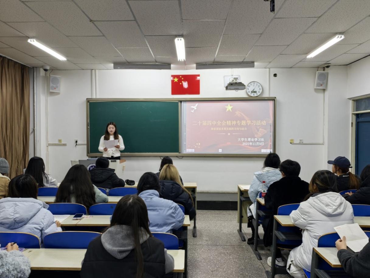 11月9日,外国语学院大学生理论学习社在SZL106教室开展“学全会精神,担青年使命——青年与中国式现代化同行”专题学习活动。