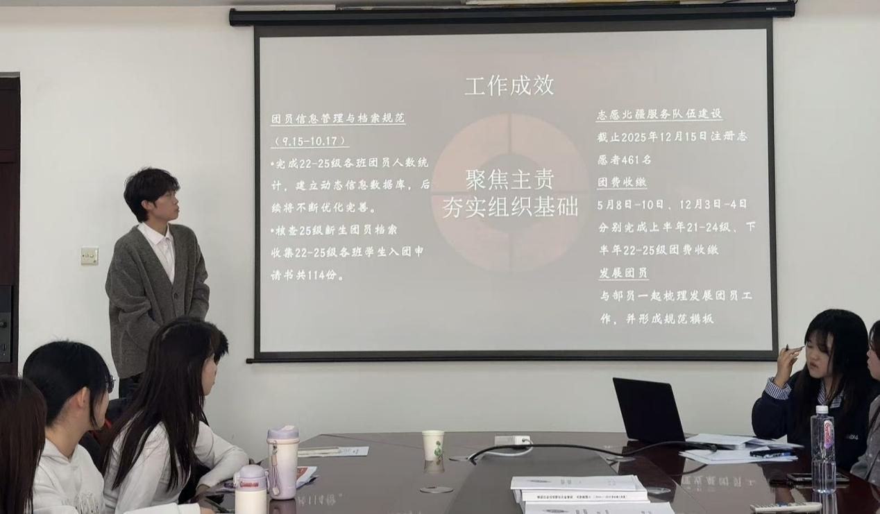 此次述职大会不仅是对学生会本学期工作的全面复盘,更是一次交流经验、凝聚共识的重要契机。雷旭平老师对各部门的辛勤付出给予充分肯定,并针对工作中的不足提出改进建议,鼓励全体成员立足新起点,以更饱满的热情投入到后续工作中。参会成员纷纷表示,将以此次大会为契机,查漏补缺、锐意进取,为构建更具活力的校园环境贡献青春力量。