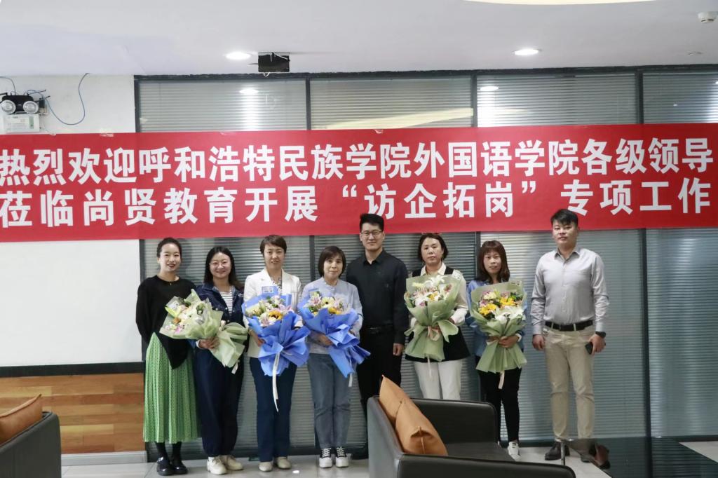 为贯彻落实学校访企拓岗促就业专项行动要求,积极开展社会需求调查,广泛开拓就业渠道和就业岗位,有力促进毕业生更加充分、更高质量就业,5月27日上午外国语学院院长肖查娜带队赴内蒙古尚贤教育科技有限责任公司进行走访调研。外国语学院党总支副书记红梅、毕业班班主任、辅导员参加走访。