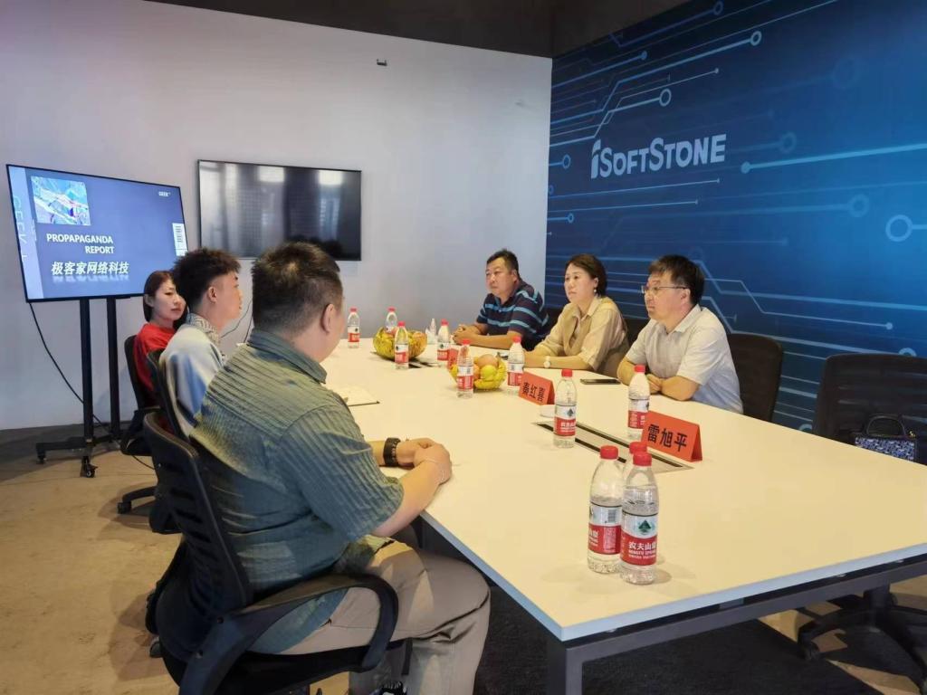在调研交流中,内蒙古极客家网络科技有限公司总经理潘硕就公司基本情况、经营规模、经营理念、人才需求、薪资待遇等方面进行了详细介绍。秦红喜副院长向用人单位介绍了我院办学历史、学科建设、师资队伍和毕业生就业情况,希望双方能以此次访企为契机,进一步深化合作,发挥各自优势,积极探索学院各专业毕业生的就业合作渠道和人才培养模式,精准对接,以社会需求为目标促进人才培养,通过合作实现共同发展,给学生提供更多的实践和就业平台。随后,双方就后续合作思路进行了热烈的探讨交流。