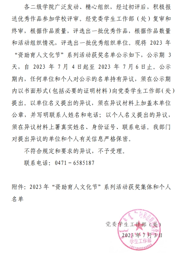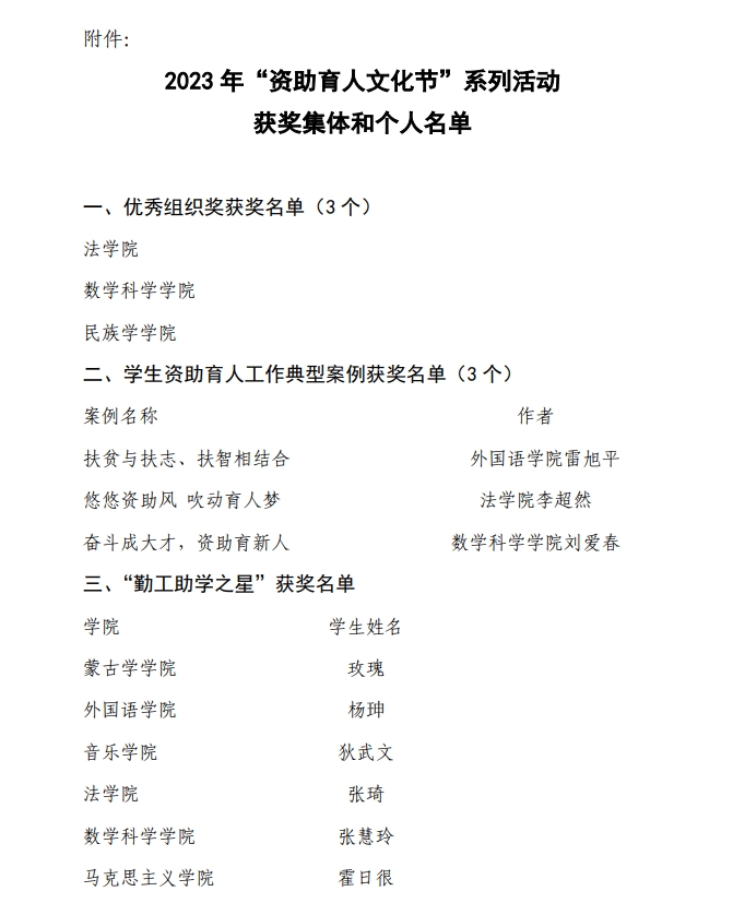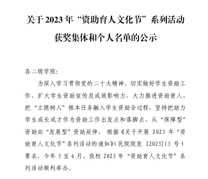 关于2023年“资助育人文化节”系列活动获奖集体和个人名单的公示