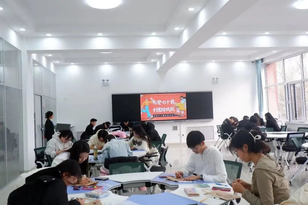 佳期将至,同心期盼。为展现我院学子蓬勃向上的精神风貌,在学校上下喜迎建校70周年之际,党委学生工作部心理健康教育服务与咨询中心于12月3日在创业楼203团体辅导室举办了“礼赞七十载,创意绘民院”迎校庆主题创意活动。