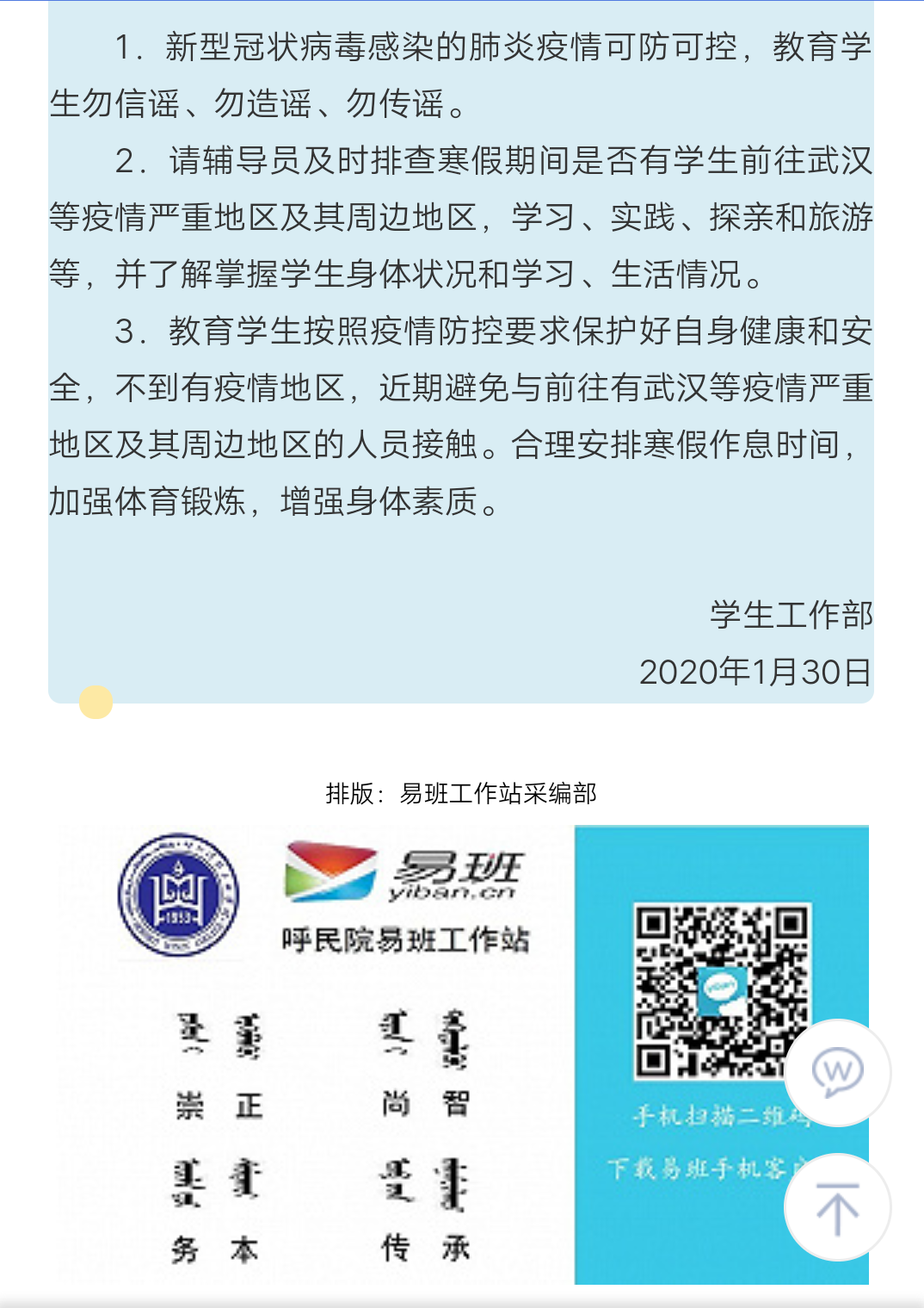 YABO鸭脖关于做好学生预防 新型冠状病毒肺炎工作措施