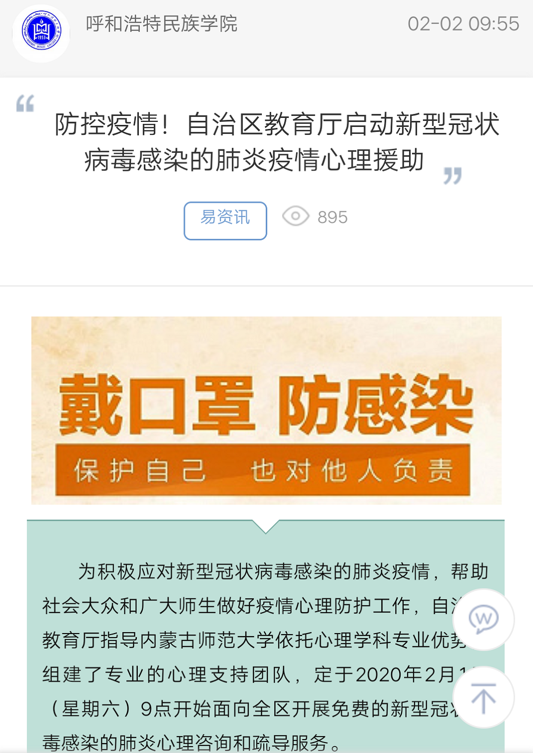 防控疫情!自治区教育厅启动新型冠状病毒感染的肺炎疫情心理援助