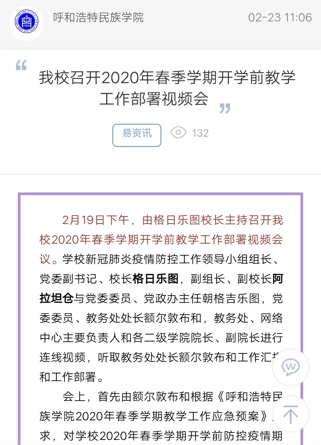鸭脖召开2020年春季学期开学前教学工作部署视频会