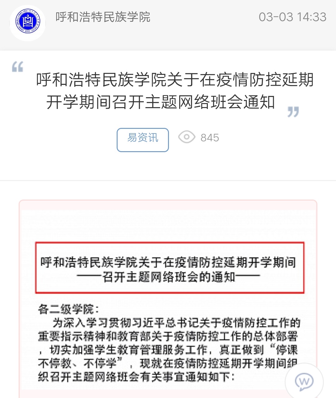上一条:【战“疫”有我——我行动】上课了!呼和民院线上教学第一天