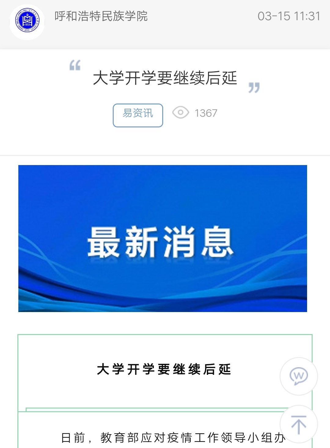 大学开学要继续后延