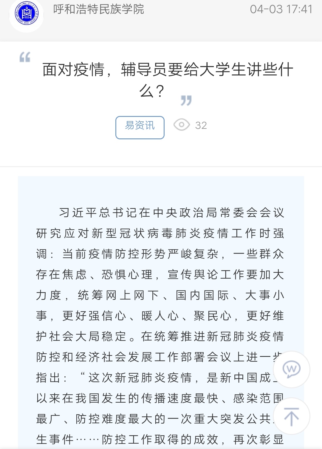 面对疫情,辅导员要给大学生讲些什么?