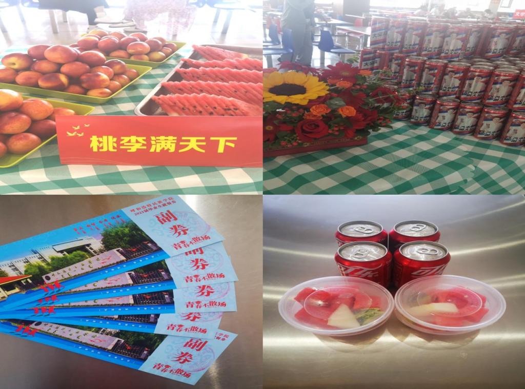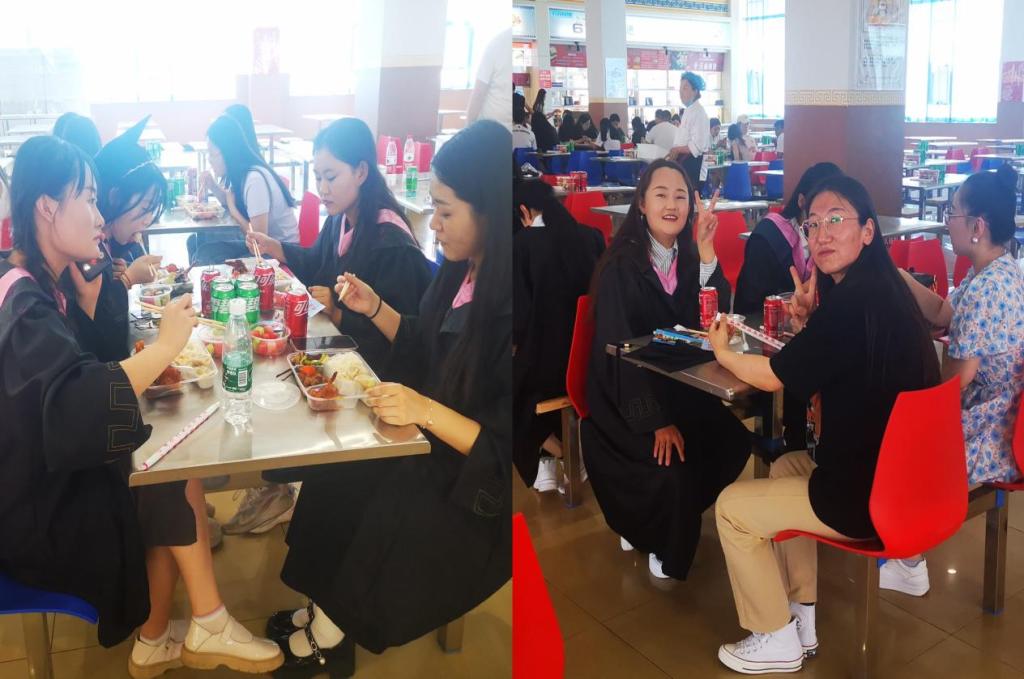 6月29日,鸭脖2023年毕业典礼和学位授予仪式结束后,后勤管理处餐饮服务中心结合主题教育,在南餐厅启动“青春不说再见”活动,为毕业生和老师们提供免费午餐,一起品味呼民院味道,以暖心的方式送别毕业生。校长韩伟新、副校长高喜天来到餐厅与毕业生共进午餐,与毕业生亲切交流,了解他们的毕业去向和职业规划。