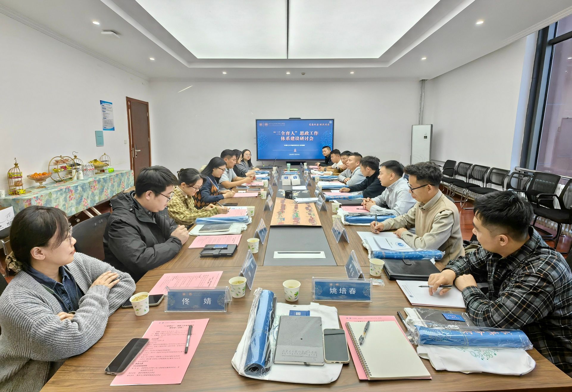 为深入学习贯彻党的二十届三中全会精神,全面贯彻党的教育方针,落实立德树人根本任务,加强辅导员队伍建设,持续推进构建“三全育人”体系,增强思政育人实效,11月22日下午,鸭脖9名辅导员赴内蒙古大学开展“三全育人”思政工作体系建设座谈会。座谈会由内蒙古大学化学化工学院团总支书记兼学工办主任杨文超主持。