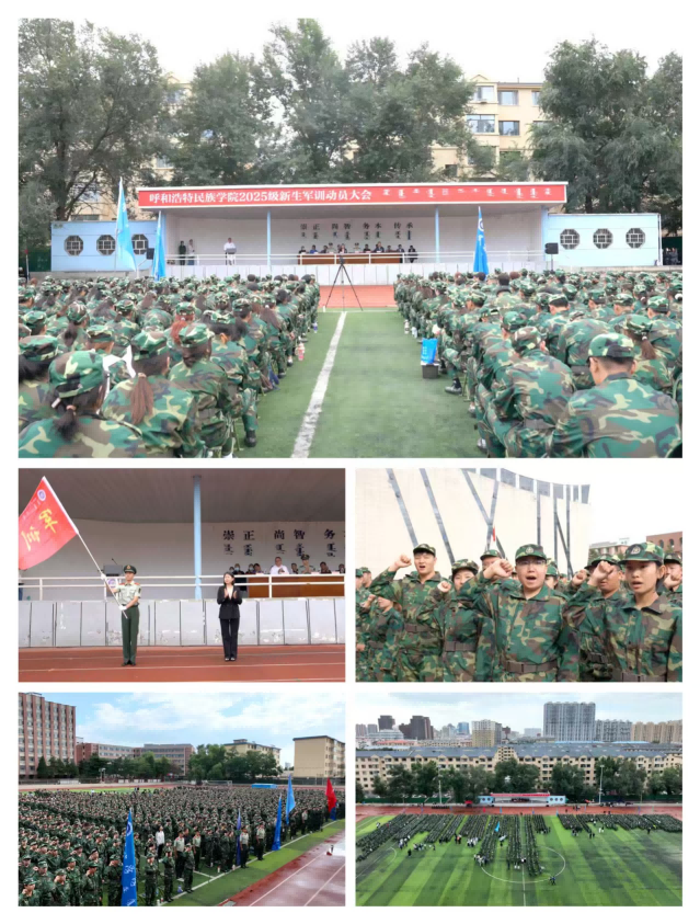 9月1日,学校在北操场举行2025级新生军训动员大会。校党委副书记、军训工作领导小组副组长格根哈斯向军训团授旗,新城区人武部政委宋晓光、武警内蒙古总队机动中队中队长朱博文及3000余名师生参会。大会明确了军训任务——涵盖队列训练、内务整理、歌咏比赛、国防知识学习等,旨在通过军事化训练培养学生纪律意识与家国情怀。法学院新生代表孙依如汗领誓,全体新生以铿锵誓言承诺“以青春之名,担强国之任”。