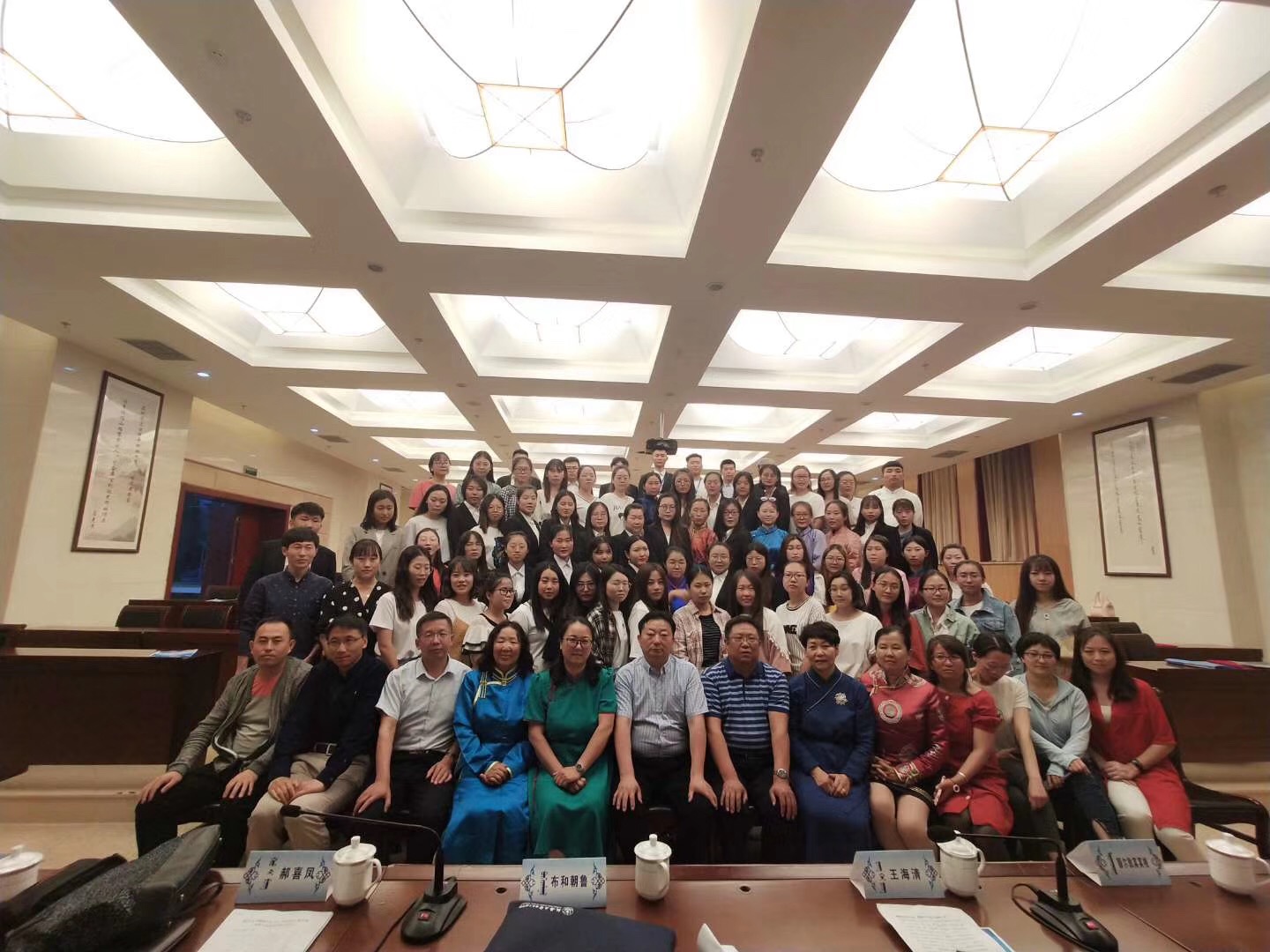 2019年6月12日,数学与大数据学院2019届毕业生毕业典礼暨表彰大会在图书馆一楼报告厅举行。数学与大数据学院党总支书记布和朝鲁、党总支副书记郝喜凤、副院长王海清、副院长额尔敦其其格、办公室主任乌云其其格、小学数学教育教研室主任其木格、经济数学教研室主任白秀及班主任、任课老师、学生代表参加了本次大会。会议由辅导员金玲老师主持。