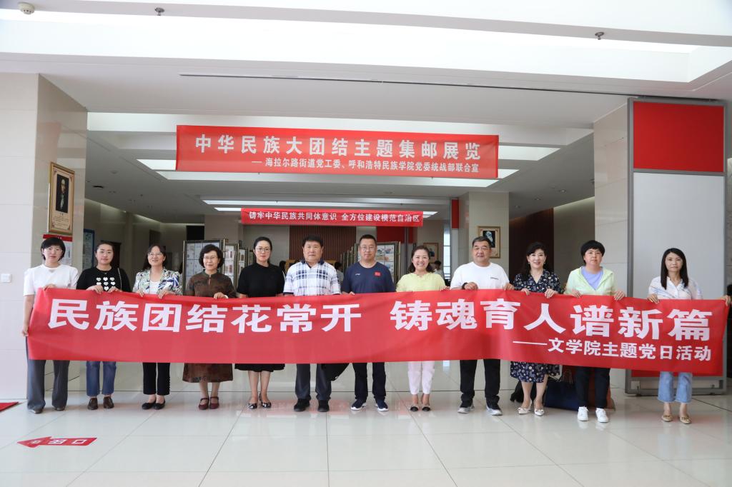 为进一步加强民族团结、筑牢中华民族共同体意识,推动学习贯彻习近平新时代中国特色社会主义思想主题教育走深走实,6月21日上午,文学院党总支组织全体教工赴图书馆学习参观“中华民族大团结”主题集邮展和“丹青翰墨书绘主题教育,凝心铸魂铸牢思想根基”主题教育书画展,作为主题党日活动主要内容。