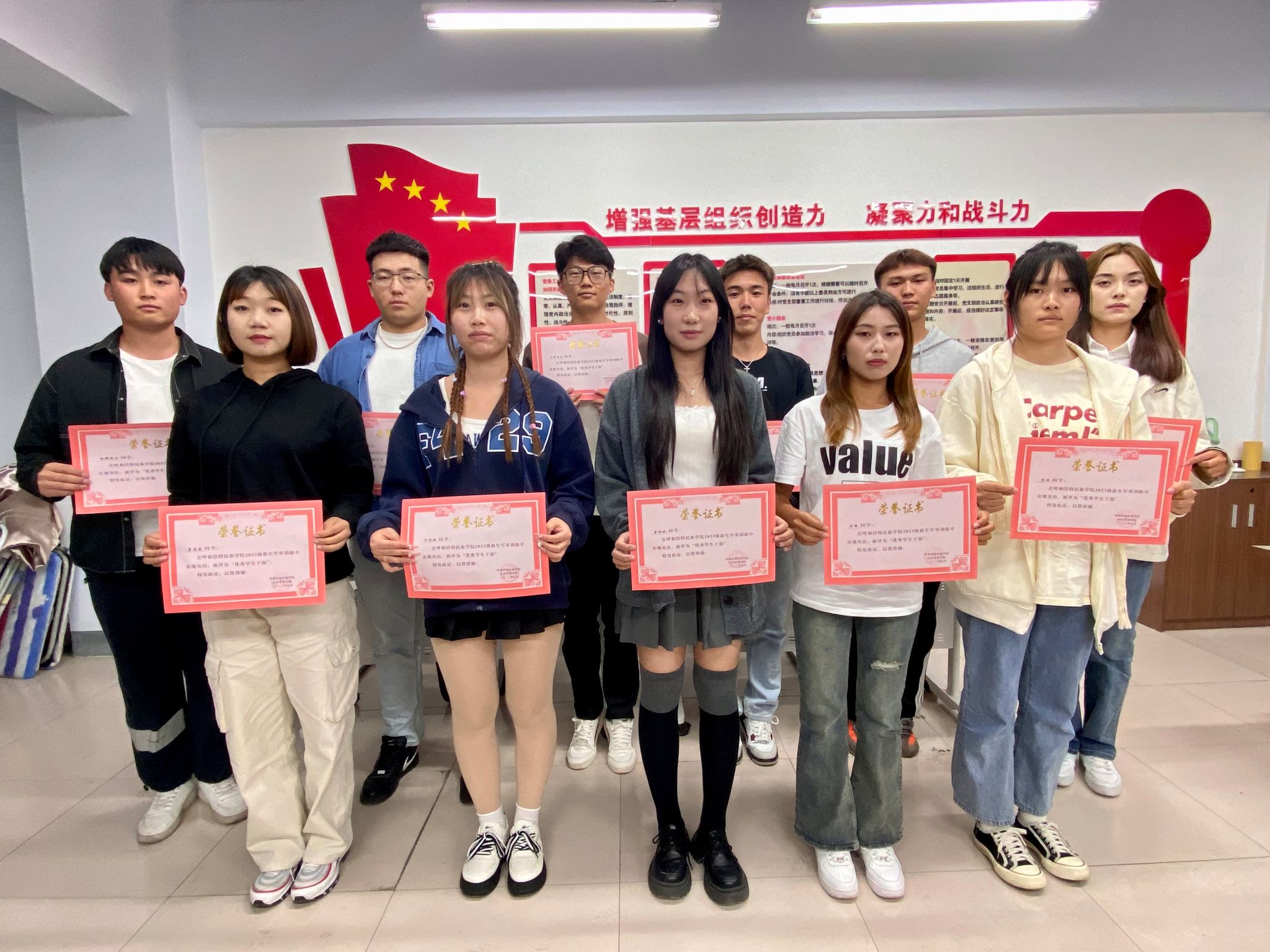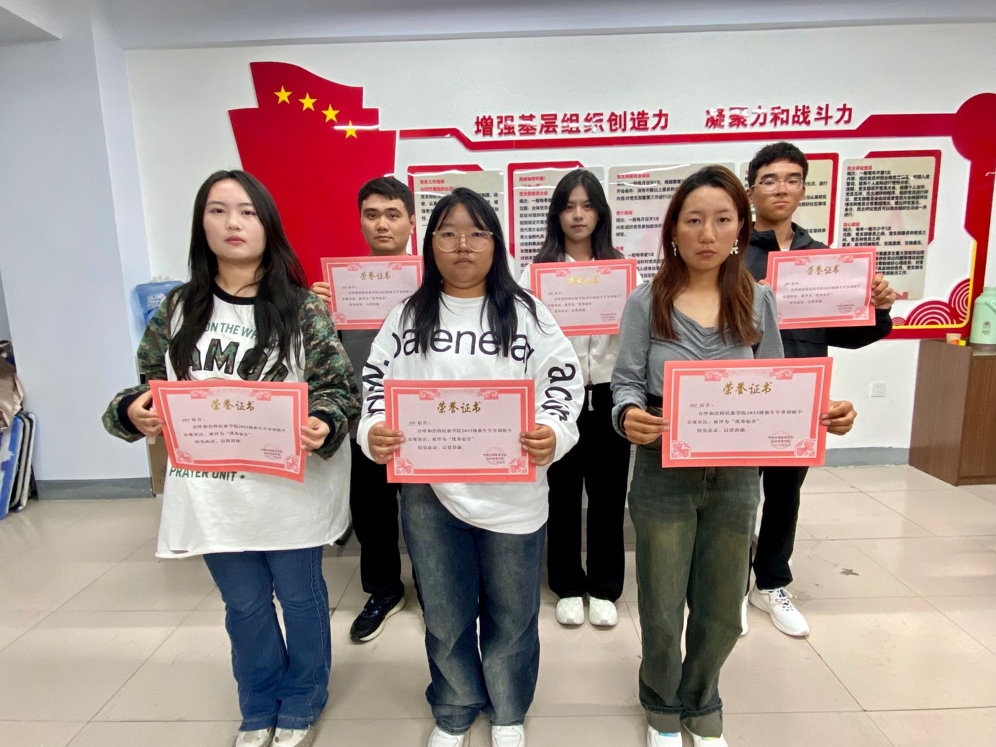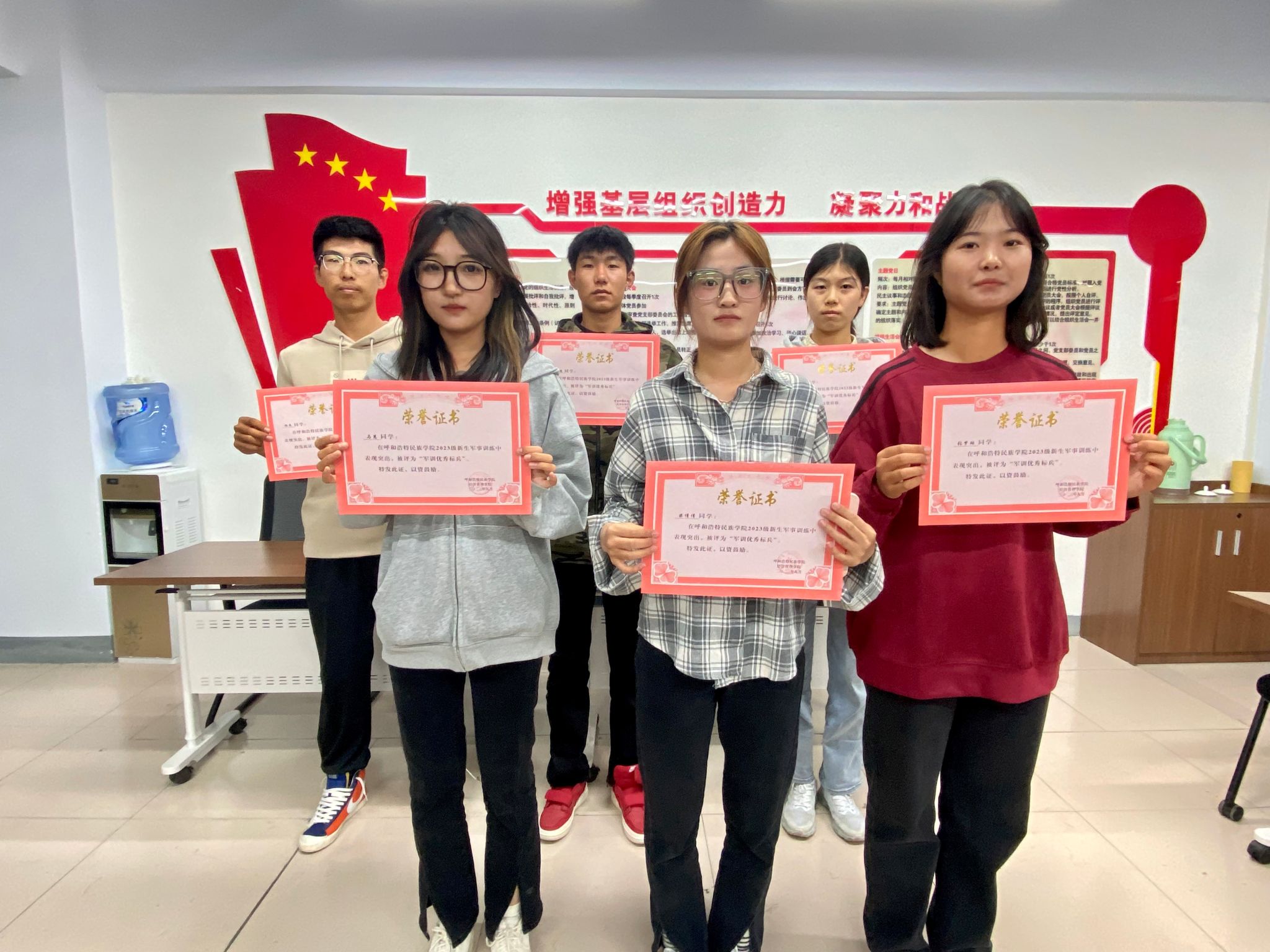 首先由华国庆老师对2023级新生军训中通过连队推荐、学院审核决定获得先进集体和先进个人进行宣读,其次对获得先进集体和先进个人的6个“优秀宿舍”、9名“优秀学生干部”、6名“优秀标兵”进行颁奖,最后华国庆老师希望受表彰的先进集体和先进个人珍惜荣誉、戒骄戒躁、再接再厉,把军训中形成的优良传统和养成的优良作风带到平时的学习、生活和实践中去。
