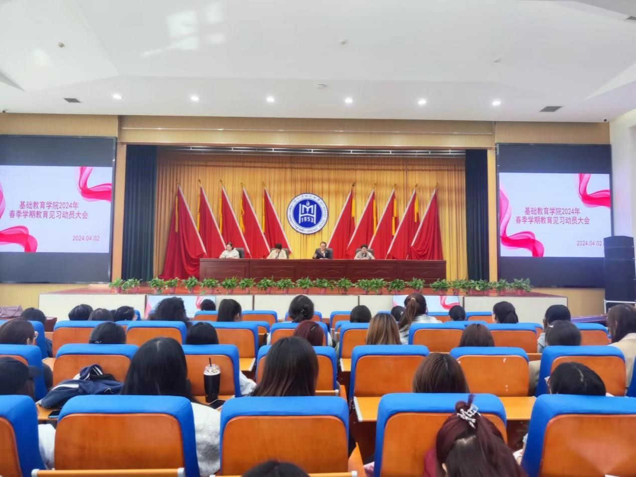 为扎实推进基础教育学院学生教育见习工作,4月2日,基础教育学院在学校学术报告厅召开2024年春季学期教育见习动员大会,党总支负责人萨日胡、副院长额尔敦其其格,综合实践教研室主任王玉霞及2021级、2022级小学教育专业全体学生参加。会议由基础教育学院院长崔风珍主持。
