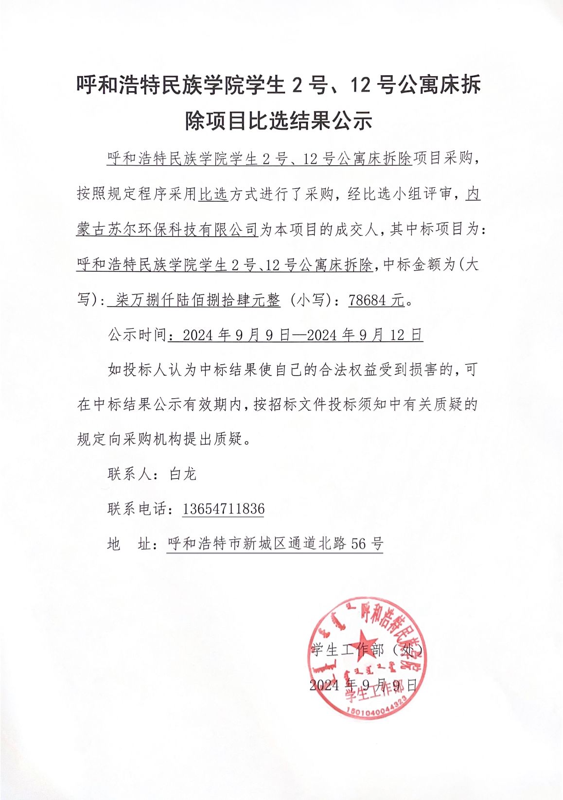 YABO鸭脖2号、12号公寓床拆除项目比选结果公示