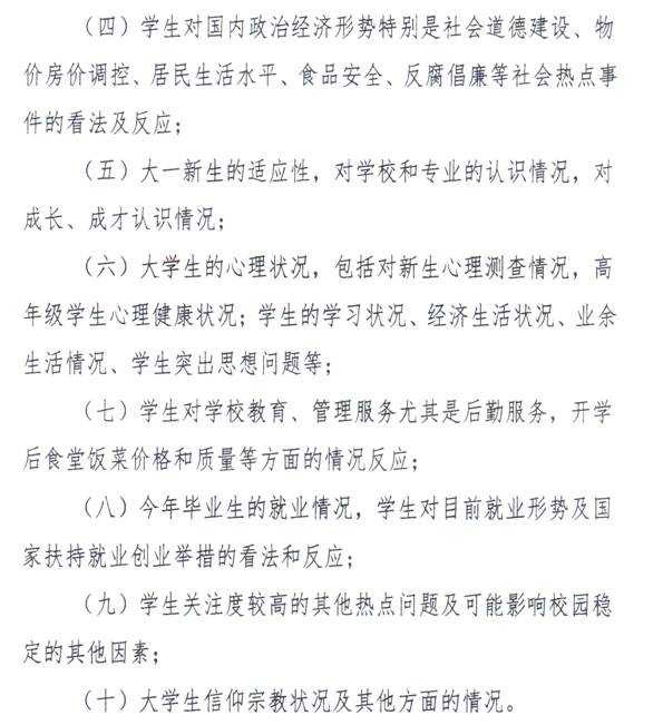 (二)可通过座谈会、个别访谈、调查问卷等方式获取学生思想动态信息,汇总形成书面报告(包含电子版),经系部党总支审阅签字后于9月17日前上报学生处朝格图。