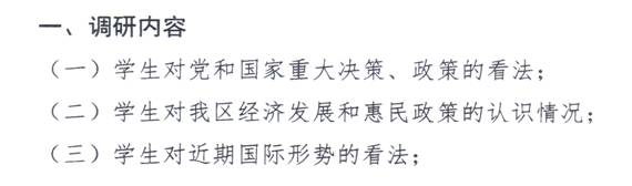 (三)调研要力求掌握学生思想动态全貌,既要包括积极方面,又要反映值得注意的问题。尤其要认真分析带有倾向性、苗头性的问题并提出解决方法,以便于推动工作健康发展。