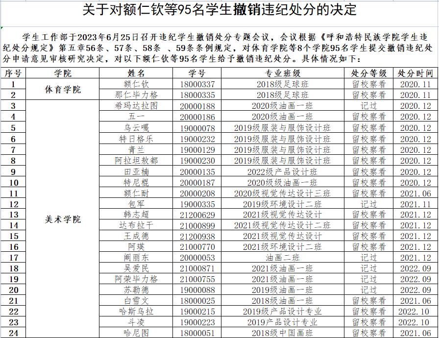 2023年关于对额仁钦等95名学生撤销违纪处分的决定.xlsx